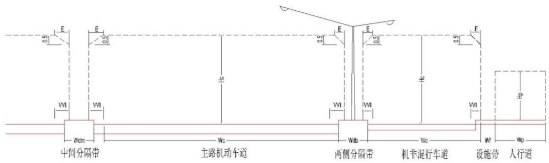 1 根据道路的性质和功能,从城市设计和使用者的视觉感受出发,构成城市主骨架的标志性道路在大城市一般为快速路,在中小城市一般为主干路。其决定着城市空间布局,对城市景观有很强的控制作用。
